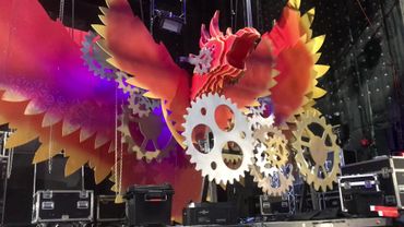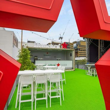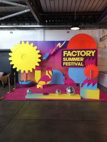 A VERY CUSTOM 3D PHOTOBOOTH WE CREATED FOR THE FACTORY SUMMER FESTIVAL LAUNCH EVENT WITH LIT UP LIGHTNING BOLT AND SPINNING BIG SUN.